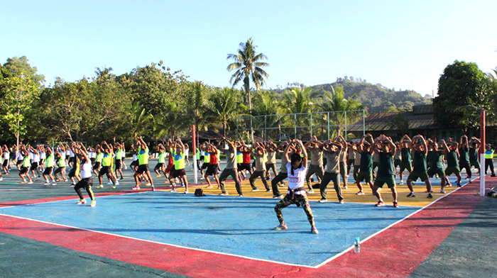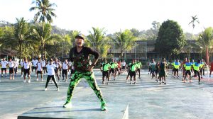 Sorong – Prajurit dan ASN Korem 171/PVT melaksanakan Senam Aerobik dan Zumba yang di pimpin oleh Kasrem 171/PVT Kolonel Inf Dian Sundiana,S.E,M.M, yang bekerjasama dengan pusat kebugaran kota Sorong bertempat di Lapangan Korem 171/PVT Jl. Pramuka No. 1 Sorong-Papua Barat, Kamis (14/2/18).