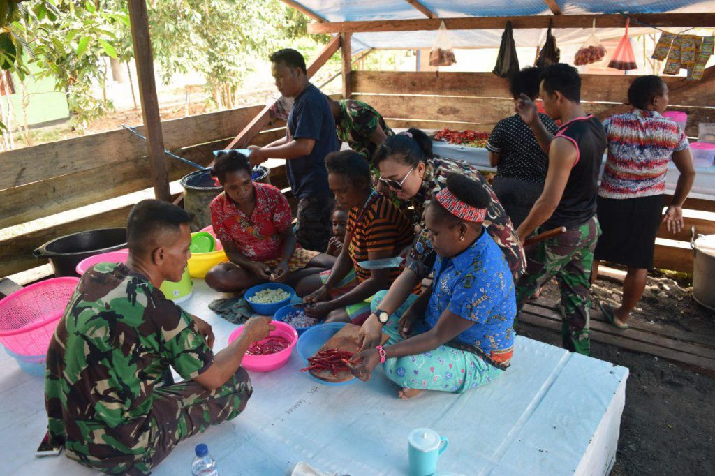 “Bapak-bapak TNI sudah banting tulang bekerja untuk membangun jalan dan rumah dikampung ini dengan susah payah. Kami ibu-ibu disini tidak mahu melihat fokus terpecah karena masalah makanannya. Hal itu yang membuat kami para ibu-ibu harus merelakan waktu kosong kami untuk menyiapkan makanan dan minuman bagi para prajurit yang sedang bekerja.” Ujas salah satu warga Ibu Esti Sayori