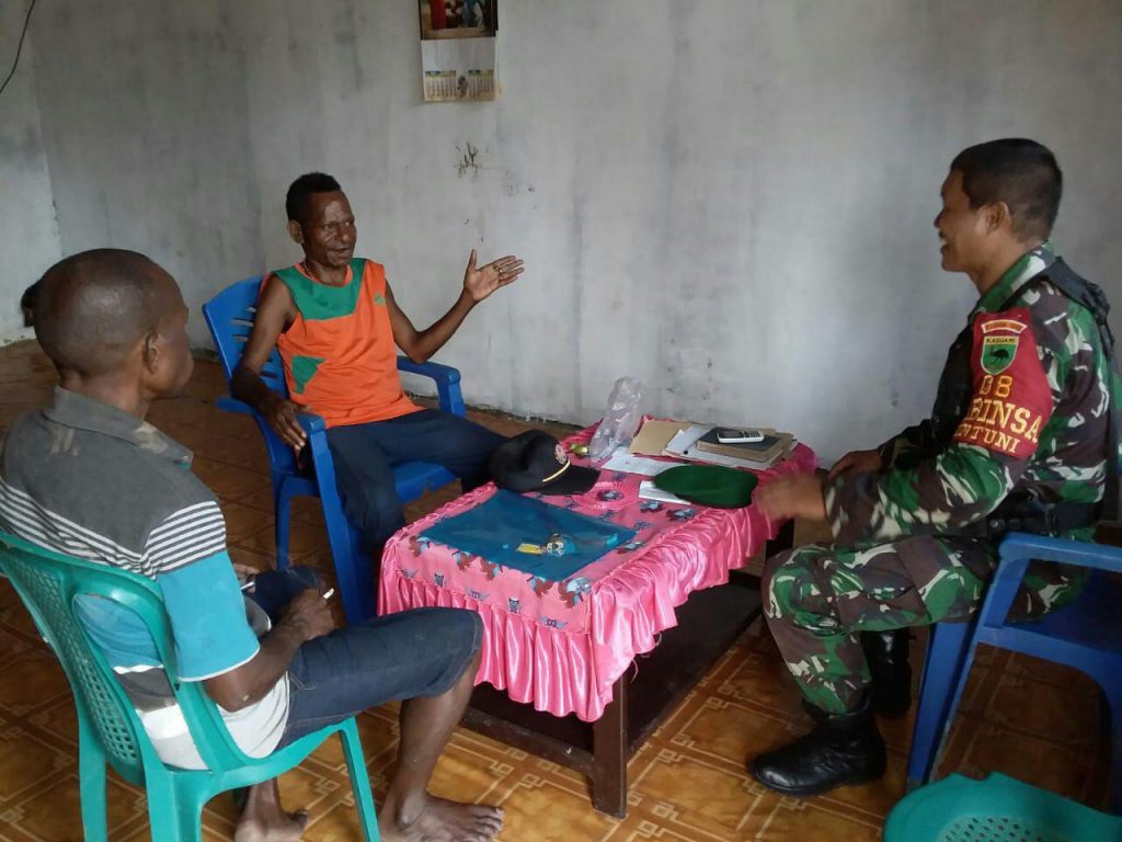Salah satu sikap dan perilaku Babinsa yang harus dijalani guna mendukung kemanunggalan TNI dan rakyat adalah harus baik baik dengan masyarakat dengan senyum Teritorial seperti halnya yang dilakukan Babinsa Koramil 1801-08/Bintuni Serda Laode telah mampu merebut hati rakyat dari anak anak sampai orang tua, keakraban Babinsa ini terbukti saat berinteraksi melakukan komunikasi sosial di rumah Bapak Yance Iba selaku Lurah Bintuni Timur Kab. Teluk Bintuni Prov. Papua Barat, Jumat (17/05/2019).