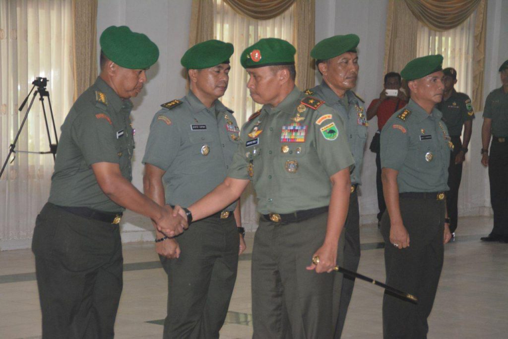 Sorong –  Danrem 181/PVT Brigjen TNI Ignatius Yogo Triyono, M.A., memimpin pelaksanaan Serah Terima jabatan dan tradisi satuan Kasi Pers dan Kasi Ter Korem 181/PVT yang dihadiri oleh Kasrem 181/PVT Kolonel Inf Hariyanto, Para Kasi Korem 181/PVT, para Komandan Satuan dan Ka Balak Aju jajaran Korem 181/PVT, Ketua Persit KCK Koorcabrem 181 Ny. Ignatius Yogo Triyono beserta pengurus Persit KCK bertempat di Aula Praja Vira Tama Korem 181/PVT Jl. Pramuka No. 1 Sorong-Papua Barat, Jumat (18/01/2019).