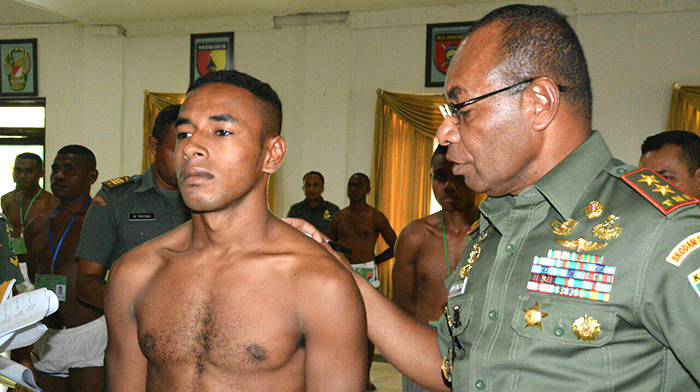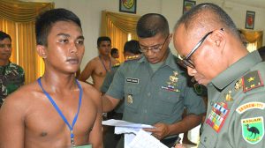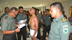 Sorong – Danrem 171/PVT Brigjen TNI Ignatius Yogo Triyono, M.A., selaku ketua Sidang Penerimaan Calon Tamtama TNI AD Gelombang I Tahun 2018 Sub Panda Sorong, memimpin pelaksanaan Sidang Penerimaan Calon Tamtama TNI AD Gelombang I tahun 2018 Sub Panda Sorong bagi 172 orang Calon, yang ditinjau langsung oleh Pangdam XVIII/Kasuari Mayjen TNI Joppye O. Wayangkau didampingi oleh Ka Kesdam XVIII/Kasuari Kolonel Ckm Asep Usmanto dan Waka Anjendam XVIII/Kasuari Mayor Caj Dedy Mulyadi dihadiri oleh Kasrem 171/PVT Kolonel Inf Dian Sundiana selaku Wakil Ketua, Kasi Pers Korem 171/PVT Kolonel Inf Rudi Andriono, selaku Sekretaris, Waka Ajenrem 171/PVT Kapten Caj Rudi Gayo selaku Katim Administrasi, Dandenkesyah 17.04.01Letkol Ckm Agung Sunarko selaku Katim Rik Kes, Kasi Intel Korem 171/PVT Kolonel Inf Albert Panjaitan selaku Ka Tim Rik MI, Kapten Inf Bambang selaku Katim Jas bertempat di Aula Korem 171/PVT Jl. Pramuka No. 1 Sorong-Papua Barat, Selasa (03/04/18).