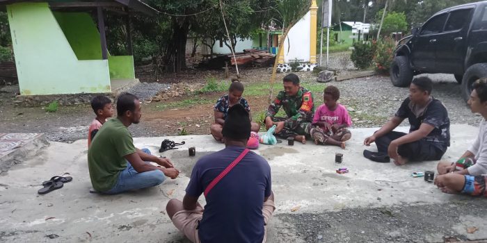 Dalam rangka menciptakan suasana keamanan, ketertiban dan ketentraman masyarakat di wilayah binaan. Babinsa Koramil 1801-06/Sidey Kopka Karnapi beserta Briptu Andrik Endra Prakasa Babinkamtibmas Polsek Masni terus bersinergi dengan seluruh elemen masyarakat, salah satunya dengan menjalin komunikasi sosial (komsos) dengan Bapak Nando Kadapi Tokoh masyarakat Kampung Sidey Distrik Sidey, Manokwari, Papua Barat, Minggu (17/11/2024).