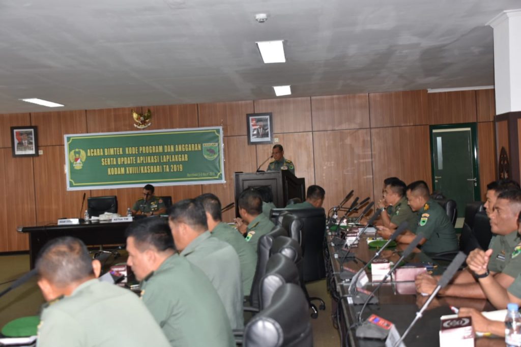 Dikutip dari sambutan Pangdam XVIII/Ksr Mayjen TNI Joppye Onesimus Wayangkau yang dibacakan oleh Irdam XVIII/Ksr bahwa kegiatan Sosialisasi Kode Program dan Anggaran serta Update Aplikasi ini penting dan bernilai strategis, sebab berkaitan langsung dengan implementasi pengelolaan keuangan Negara pada tahun anggaran berjalan. Disamping itu juga, berguna untuk mempermudah pengawasan dan pertanggungjawaban administrasi keuangan Negara melalui penyajian data secara online maupun offline sebagai bahan informasi pimpinan dalam pengambilan keputusan. Kodam XVIII/Ksr telah menyusun Program Kerja dan Anggaran Kodam XVIII/Ksr TA 2019 yang terdiri dari 4 program dan 41 kegiatan, dimana didalamnya memuat susunan kode program dan anggaran belanja dengan nomor kode secara spesifik berdasarkan sumber anggaran, jenis dana, unit organisasi, Kotama maupun Satker sehingga diperlukan kecermatan maupun ketelitian dalam menerjemahkan administrasi keuangan tersebut.