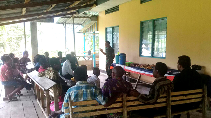 Kaimana – Babinsa kampung Waripi serda Hidoluk dari Koramil 1713-02/Teluk Etna memberikan sosialisasi kesehatan bersama masyarakat di kampung waripi distrik teluk Etna. Masuki musim penghujan dan angin bertiup kencang dapat menimbulkan bencana tanah longsor maupun banjir dan wabah penyakit yang di timbulkan akibat dari lingkungan yang tidak sehat, Kamis (25/01/2018).
