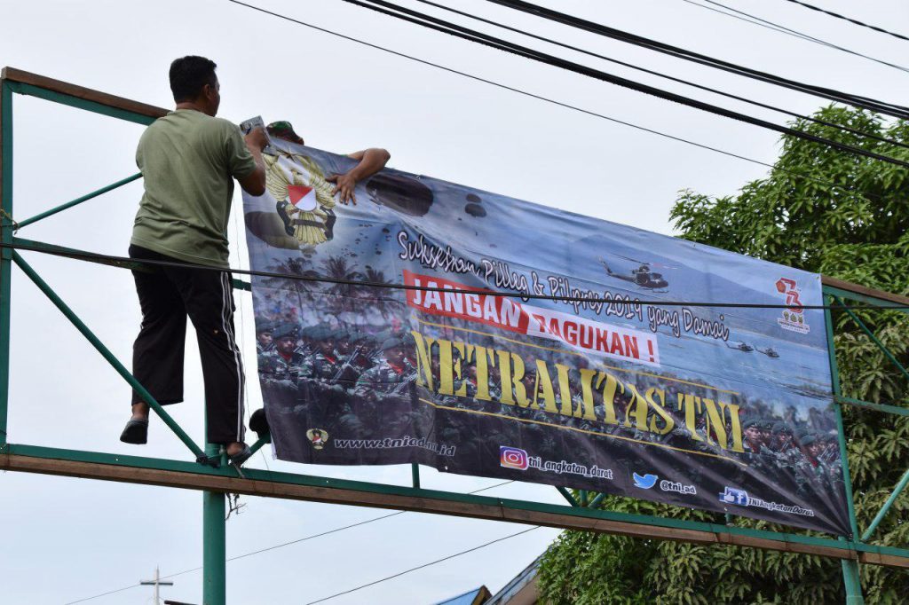 Pemasangan spanduk yang bertuliskan “Sukseskan Pilleg dan Pilpres 2019 yang Damai, Jangan Ragukan ! Netralitas TNI”, yang di lakukan jajaran Kodim 1802/Sorong merupakan Sebagai bentuk ketegasan TNI dalam menjaga Netralitas pada Pilleg dan Pilpres 2019.