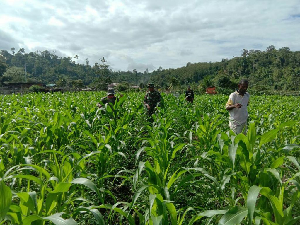Fakfak – Danramil 1803-04/Karas Kapten Inf C. Huninhatu bersama Babinsa Serda Iwan dampingi Para Petani Jagung dalam memberikan Pupuk dan menyemprotkan Hama Jagung guna menyukseskan Program Ketahanan Pangan Nasional, Bertempat di Kampung Malakuti , Distrik Karas, Kabupaten Fakfak, Rabu (31/04/2019).