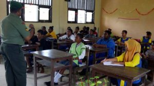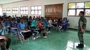 Sorong – Bintara Pembina Desa (Babinsa) Koramil 1704-14/Beraur Sertu Sapruddin memberikan materi pelajaran Wasbang dan Bela Negara kepada siswa-siswi SMP Klalomon Distrik Klamono Kab. Sorong…