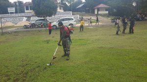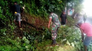 Sorong – Anggota Babinsa Koramil 1704-13/Sorong Barat bersama dengan pegawai Distrik dan pegawai kelurahan beserta warga masyarakat melaksanakan gotong royong membersihkan sepanjang jalan Rufei Distrik…