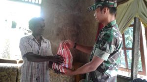 Sorong – Danramil 1704-03/Saonek Mayor Inf Y.A Padang bersama anggota Babinsa melaksanakan komunikasi sosial dengan Tokoh Adat Bapak Rajab Mayor yang ikut membantu menyerahkan serta…