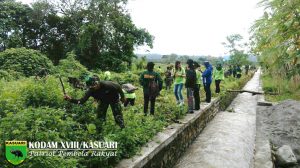Sorong – Pelda Gianto Babinsa Koramil 1704-01/Sorong Timur bersama warga kelurahan Aimas melaksanakan karya bakti pembuatan saluran air guna mengantisipasi datangnya musim penghujan di RT…