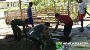 Sorong – Sertu Markus Burdam bersama 3 (tiga) Babinsa Koramil 1704-09/Kabare melaksanakan kegiatan komunikasi sosial serta melaksanakan kegiatan pembangunan rumah tokoh adat Kampung Darundap Bapak…