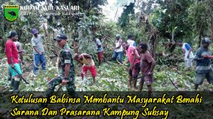 Manokwari – Babinsa Kampung Subsay, Serda Yusuf bersama masyarakat melaksanakan kegiatan kerja bakti dalam rangka penyiapan lahan yang akan digunakan untuk pembangunan kantor kepala kampung,…
