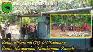 Kaimana- Babinsa Koramil 1713-01/ Kaimana melaksanakan pembangunan rumah masyarakat a.n Bapak Karel Umuru, suku Kambrauw (43), Kristen Protestan, Pekerjaan Petani bertempat di jl. Km 0…