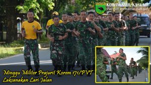 Sorong – Prajurit Korem 171/PVT melaksanakan pemeliharaan serta peningkatan kemampuan fisik, dengan melaksanakan Lari Jalan yang dipimpin oleh Kajasrem 171/PVT Kapten Inf Bambang Triono ,…