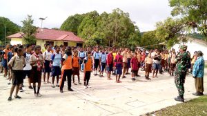 Kaimana – Bertempat di Distrik Kambrauw, Kab Kaimana, Babinsa Waho Serda Juanda beserta sertu Ronal wania mengajarkan Peraturan Baris Berbaris (PBB) kepada siswa dan siswi…