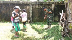 Sorong – Babinsa Kelurahan Saoka Koramil 1704-13/Sorong Barat Serda Adil membantu mama membersihkan jalan dan selokan disepanjang jalan Obet Mubalus, Kelurahan Saoka, Distrik Maladum, Kota…