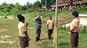 Aifat – Koramil 1704-12/Aifat Kodim 1704/Sorong Serda M. Dato Banbinsa Kampung Susumuk Distrik Aifat Jaya Kab. Maybrat melaksanakan kegiatan pelatihan tata cara pelaksanaan upacara bendera…