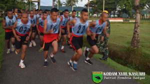 Sorong – Peleton Tangkas Yonif RK 752/VYS melaksanakan kegiatan kesegaran jasmani “A” lari selama 3200 yang disaksikan langsung oleh Asops Kasdam XVIII/Kasuari Kolonel Inf Prasetyo…