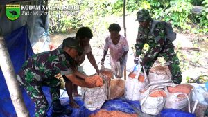 Sorong – Babinsa Koramil 1704-10/Makbon Serma Yusuf Mobilala membantu Masyarakat diwilayah kampung binaanya dalam kegiatan tokok sagu bertempat di Kampung Klaso, Distrik Klasau, Kabupaten Sorong,…