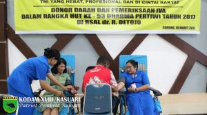Sorong – Ketua Persit Korcabrem 171, yang di wakili oleh Wakil Ketua Persit Koorcabrem 171, Ny. Dian Sundiana, menghadiri Acara Donor Darah Dalam Rangka HUT…