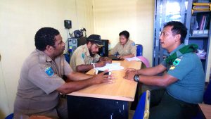 Sorong – Bintara Pembina Desa (Babinsa) Kel Klasaman Distrik Klaurung Serda Sudirman Koramil 1704-01/Sorong Timur melaksanakan Komsos dengan Ibu Meri Staf kelurahan di kantor kel.…