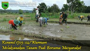 Manokwari – Babinsa Koramil 1703-04/Warmare Serda Yusuf, Kopda Karnapi dan Kopda Setiawan melaksanakan kegiatan tanam padi bersama Kelompok Tani Moyang di Kampung Sidomuncul Distrik Prafi…