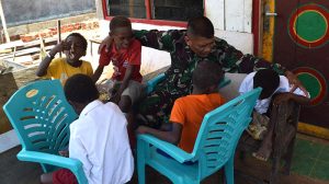 Sorong – Di sela-sela tugas menjadi anggota Satgas TMMD ke – 101 Kodim 1704/Sorong, upaya untuk mewujudkan kemanunggalan dengan masyarakat juga selalu dilakukan. Seperti Serda…
