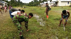 Sausapor – Wadanramil 1704-02/Sausapor Kapten Inf Muchlison Efendi SH, serbuan teritorial dengan anggotanya dalam kegiatan karya bakti membersihkan lingkungan bahu membahu dengan masyarakat di Kampung…