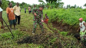 Sorong – Bintara Pembina Desa (Babinsa) Koramil 1704-07/Seget Serda Sunardi Ote bersama masyarakat melaksanakan kegiatan karya bakti pembersihan parit di kampung Wawenagu Distrik Seget, Sabtu…