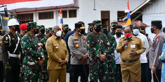 Manokwari. kodam18kasuari.tni-ad.mil.id – Panglima TNI Marsekal TNI Hadi Tjahjanto bersama Kapolri, Jenderal Pol Listyo Sigit Prabowo melakukan kunjungan kerja ke Kota Sorong, Papua Barat, Sabtu (28/8/2021).