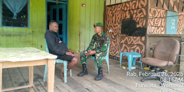 Dalam rangka mempererat hubungan dengan masyarakat serta mendukung suksesnya program Tentara Manunggal Membangun Desa (TMMD) Ke-123, Satgas TMMD Kodim 1806/Teluk Bintuni menggelar kegiatan komunikasi sosial (Komsos) bersama Kepala Dusun Kampung Riendo, Bapak Yonas. Kegiatan ini berlangsung di Distrik Fafurwar, Kabupaten Teluk Bintuni, Papua Barat, pada Rabu (26/02/2025).