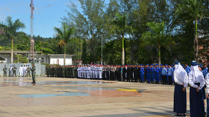 Sorong – Prajurit jajaran Korem 171/PVT Garnizun Sorong melaksanakan Upacara peringatan Hari Pahlawan ke-72 tahun 2017 dengan Inspektur Upacara Kepala Staf Korem 171/PVT Kolonel Inf Dian Sudiana,S.E,M.M, dan pelaksanaan Upacara di Kantor Walikota di wakili oleh Kasi Log Korem 171/PVT Kolonel Kav Susanto Dwi asmara,S.H, dihadiri oleh para Kasi Korem 171/PVT, para Komandan Satuan, para Dansat Kabalak Aju jajaran Korem 171/PVT, para Muspida bertempat di lapangan upacara Korem 171/PVT, Alun-alun Aimas, Kantor Walikota, Sorong-Papua Barat, Jumat (10/11/17).