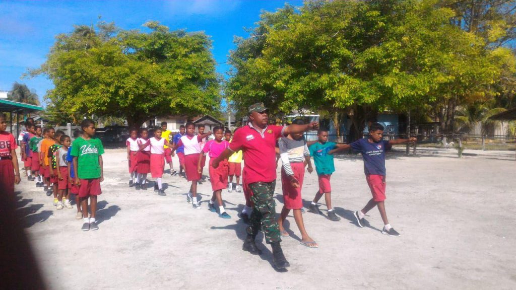 Raja Ampat – Babinsa Koramil 1805/Raja Ampat, Serda Max Kelen mengajar PBB di SD Panel Kampung Pam Distrik Waigeo Kepulauan, Kab. Raja Ampat, pada Selasa (12/2/2019).