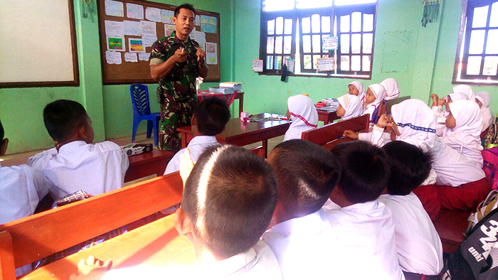 Sorong – Babinsa Kelurahan Maibo Koramil 1704-01/Sorong Timur Serka Sujito tingkatkan Pendidikan anak dengan memberikan materi Wawasan Kebangsaan kepada Siswa/Siswi SMP Negeri 1 Distrik Sorong, Kabupaten Sorong, Papua Barat, Rabu (06/09/2017).