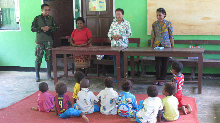 Hal tersebut yang menjadi dasar Danpos Manokwari Utara Koramil 1703-01/Manokwari Pelda Yanis Subiyantoro yang telah mengunjungi Paud Bougenvile yang terletak Di Kamping Anggori Distrik Manokwari Utara Kab. Manokwari Prov. Papua Barat, Kamis (31/08/2017).