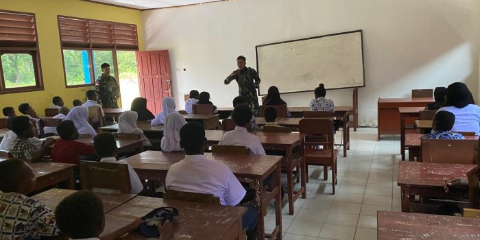 Sorsel – Dalam rangka meningkatkan semangat belajar demi terciptanya para generasi penerus bangsa yang berkualitas, Pos Kokoda Satgas Pamtas RI-PNG Kewilayahan Papua Barat Daya Yonif 762/VYS yang dipimpin oleh Wadanpos Kokoda Sertu Irzal memberikan motivasi dan bimbingan belajar para siswa di SMP N 1 Kokoda di Kampung Tarof, Distrik Kokoda, Kabupaten Sorsel. Prov.Papua Barat Daya. Dalam rilis tertulisnya, Dansatgas Letkol Inf Dwi Haryanto,S.Hub.Int.,M.H.I mengungkapkan bahwa pemberian motivasi kepada anak-anak merupakan bekal awal untuk mengapai cita-cita yang diimpikan.Sabtu (03/08/2024)