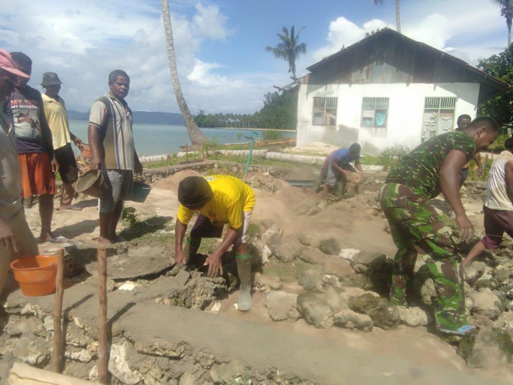 Fakfak – Guna tingkatkan kerja sama dan solidaritas yang tinggi antara Babinsa dan Masyarakat, anggota Koramil 1803-04/Karas di pimpin Serma Yakobus Kocu melaksanakan karya bakti dalam membantu pembangunan rumah Bapak Hj. Umar, salah satu tokoh masyarakat kampung Malakuli, Distrik Karas, Senin (21/01/2019).