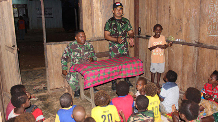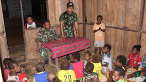 Sorong – Sejak dimulainya kegiatan TMMD Ke – 101 Kodim 1704/Sorong di Kampung Sailala Distrik Sayosa Timur Kabupaten Sorong keberadaan anggota Satgas TMMD, di wilayah itu sangat diterima masyarakat setempat. Danramil 1704-14/Beraur Kapten Inf Muchlison Efendi S.H selaku mempunyai sektor wilayah territorial selalu memberikan kegiatan – kegiatan positif kepada anak – anak kampung sailala, Kamis (19/04/2018).