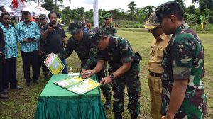 Sorong – Danrem 171/PVT Brigjen TNI Ignatius Yogo Triyono MA selaku Penanggung Jawab Keberhasilan Pelaksanaan (PKP) TMMD secara resmi menutup seluruh kegiatan program TMMD ke 101 di Kampung Sailala, bertempat di lapangan sepakbola Kampung Sailala Distrik Sayosa Timur Kabupaten Sorong.