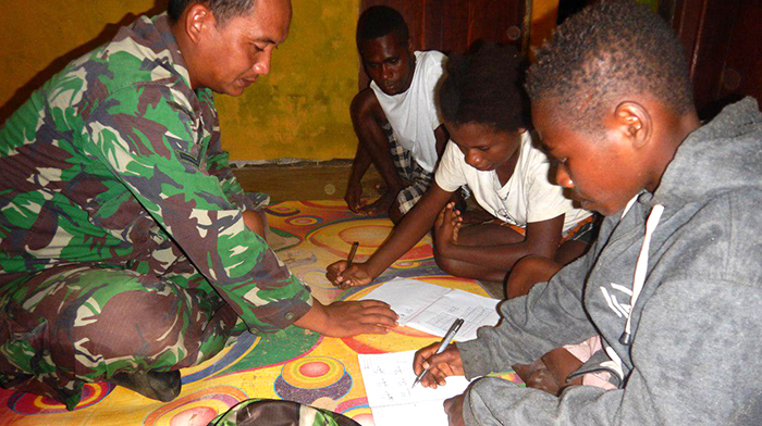 Awal mulanya waktu mengerjakan sasaran fisik TMMD Ke – 101 yaitu rehab ruang sekolah, ketika Yufi anak perempuan itu yang sedang berbicara dengan temannya bahwa dia tidak bisa mengerjakan soal matematika dari ibu guru. Oleh karena itu saya akan membagi ilmu kepada generasi muda bahwa pendidikan merupakan suatu hal yang sangat penting dalam kehidupan, karena pengetahuan dan kemampuan berpikir seseorang sangat tergantung tingkat pendidikannya. Ungkap Anggota Kodim 1704/Sorong.
