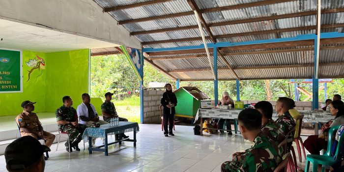 Satgas TNI Manunggal Membangun Desa (TMMD) Ke-123 Kodim 1806/Teluk Bintuni mengadakan penyuluhan pencegahan stunting di Distrik Riendo dan Maryedi, Kabupaten Teluk Bintuni, Papua Barat, pada Sabtu (8/3/2025). Kegiatan ini dihadiri langsung oleh Dansatgas TMMD Letkol Inf Teguh Eko Efendi, S.E., serta tenaga medis dari Puskesmas setempat, termasuk Dokter Meliatif Wabra dan Ibu Sri Utari.