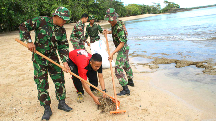 Sorong – Kegiatan Karya Bhakti dalam Rangka HUT Kemerdekaan RI Ke – 72 tahun 2017 dan 2 Tahun Lantamal XIV Sorong yang diikuti oleh TNI-Polri, Mahasiswa, Pelajar dan masyarakat, dipimpin langsung oleh Dan Lantamal XIV Sorong Brigjen TNI (Mar) Amir Faisol S.Sos yang dihadiri oleh Wadan Lantamal Kolonel (Mar) Hanif, Pasiter Korem 171/PVT Mayor Inf Anton, bertempat di Pantai Saoka Tanjung Kasuari Distrik Saoka, Kota Sorong-Papua Barat, Selasa, (01/08/17).