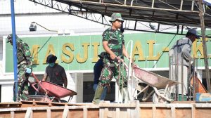 Sorong – Pelaksanaan Karya Bhakti Membantu Pengecoran Masjid Raya Al Akbar di pimpin oleh Koordinator Lapangan Serma M.H. Zaini, yang bersinergitas  TNI-POLRI dan Masyarakat yang bertempat di Jl Ahmad Yani, no 40, Masjid Raya Al Akbar, Sorong-Papua Barat, Jumat (21/09/2018).
