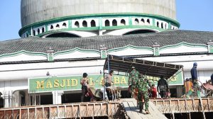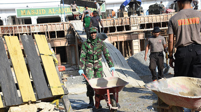 TNI-Polri Dan Rakyat Bantu Pengecoran Masjid Raya Al Akbar