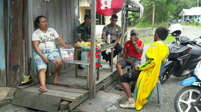 Warga masyarakat Kampung 300, Kelurahan Bonkawir Kabupaten Raja Ampat Ibu Marlinda yang kesehariannya berjualan pinang, mengucapkan terimakasih kepada Babinsa Koramil 1704-03/Saonek Sertu Eko bersama Babinkamtibmas Bripka Josias  atas perhatiannya yang telah berpartisipasi dalam menjaga daerah binaannya. Dengan adanya kegiatan Komunikasi Sosial (Komsos) ini diharapkan kita bisa bersatu bersama-sama memberantas dan menolak untuk masuknya faham radikal maupun komunis untuk masuk kembali ke Negara Kesatuan Republik Indonesia.