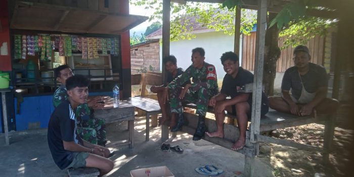 Babinsa Koramil 1801-06/Sidey Kodim 1801/Manokwari Serka Sutriyo dan Koptu Kristiyono melaksanakan kegiatan Komunikasi Sosial dengan Tokoh pemuda kampung Meyof 1 sdr Harnolik sekaligus jalin silaturahmi dengan warga binannya, yang bertempat di Kampung Meyof 1 Distrik Sidey, Kabupaten Manokwari, Provinsi Papua Barat, Kamis (05/12/2024).