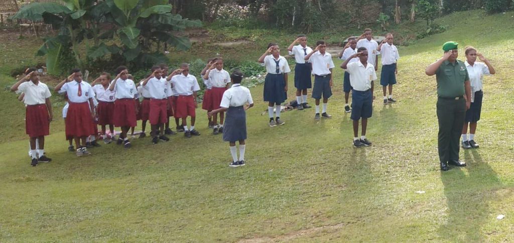 Sorong- Bertempat dilapangan SMP Negeri 3 Ayamaru Selatan, Babinsa Distrik Ayamaru Selatan Koramil 1802-10/Ayamaru Serda Suwarjono bertindak sebagai Pembina Upacara Bendera yang rutin dilaksanakan setiap hari senin di Sekolah tersebut, Selasa (29/01/2019).