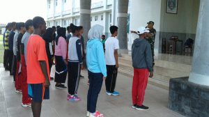 Kaimana – Koramil 1713-01/Kaimana melalui salah satu anggotanya yaitu Sersan Dua Suyitno Bintara Pembina Desa (Babinsa) Kelurahan Krooy, Distrik Kaimana, Kabupaten Kaimana, menggadakan latihan Peraturan Baris Berbaris (PBB) bertempat di SMA N 2 Kaimana, Jumat (14/09/2018).
