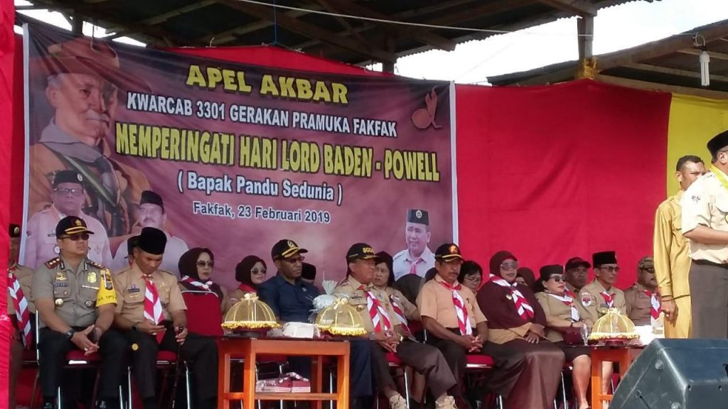 Fakfak – Bertempat di Lapangan Reklamasi Jalan DR. Salasa Namudat Fakfak telah dilaksanakan Upacara Pramuka dalam rangka HUT Lord Baden Powell (Bapak Pandu Dunia) pada hari Sabtu tanggal 23 Februari 2019 yang diselenggarakan oleh Kwarcab 3301 Kab Fakfak dan diikuti oleh Gudep Pramuka se Kab Fakfak -/+ 200 orang, Senin (25/02/2019).