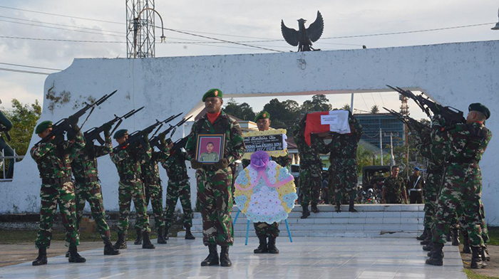 Setelah di semayamkan di rumah duka Almarhum Sertu Anumerta Handoko di bawa ke Taman Makam Pahlawan” Tri Jaya Sakti” dan dilaksanakan prosesi Upacara Pemakaman Militer yang di pimpin oleh Danrem 171/PVT Brigjen TNI Ignatius Yogo Triyono M.A., dalam sambutanya Danrem 171/PVT mengatakan kepergian almarhum sangat mengejutkan dan menimbulkan kesedihan yang mendalam bagi kita semua. Namun sebagai umat beragama yang percaya kepada kekuasaan-Nya harus dapat menerima secara iklhas, karena kepergian almarhum sudah keputusan dan kehendak Tuhan.